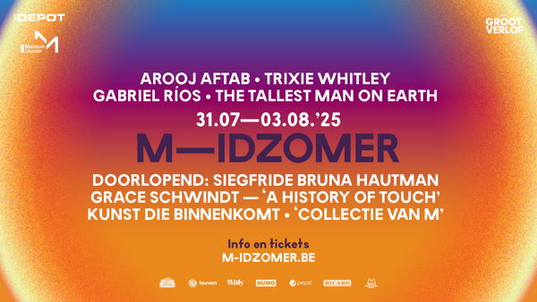 Met Cesar Quinn en BLUAI worden de laatste namen toegevoegd aan een programma dat eerder al artiesten als Trixie Whitley, Gabriel Ríos, The Tallest Man on Earth, Arooj Aftab, Kiiōtō ft. Lou Rhodes (Lamb), Charlie Cunningham en An Pierlé Quartet aankondigde. Ook jong talent krijgt een plek op M-IDZOMER: singer-songwriters uit LOOF!, een initiatief van Het Depot en VI.BE , treden op in de museumzalen.